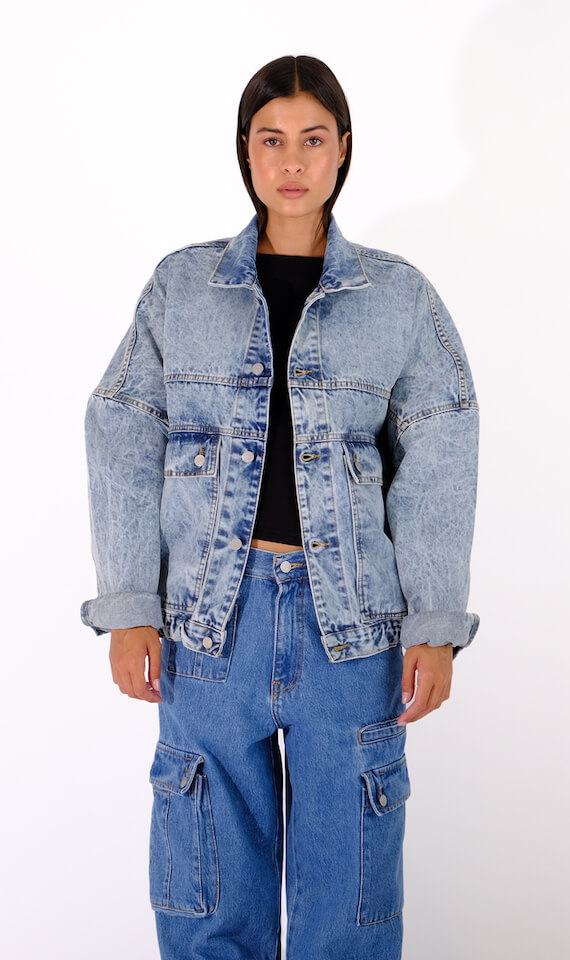 Το Madelyn jacket θα γίνει το αγαπημένο σας outerwear κομμάτι για όλες τις ώρες της ημέρας. Σχεδιασμένο με μεγάλες μπροστινές τσέπες και ιδιαίτερα μανίκια δίνει ένα διαφορετικό twist σε σχέση με το κλασσικό denim jacket.