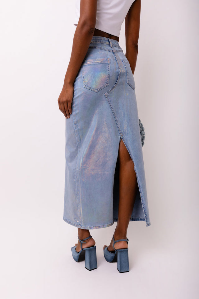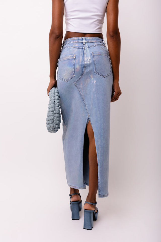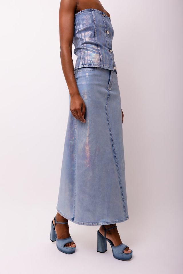 MIMI DENIM METALLIC MAXI SKIRT