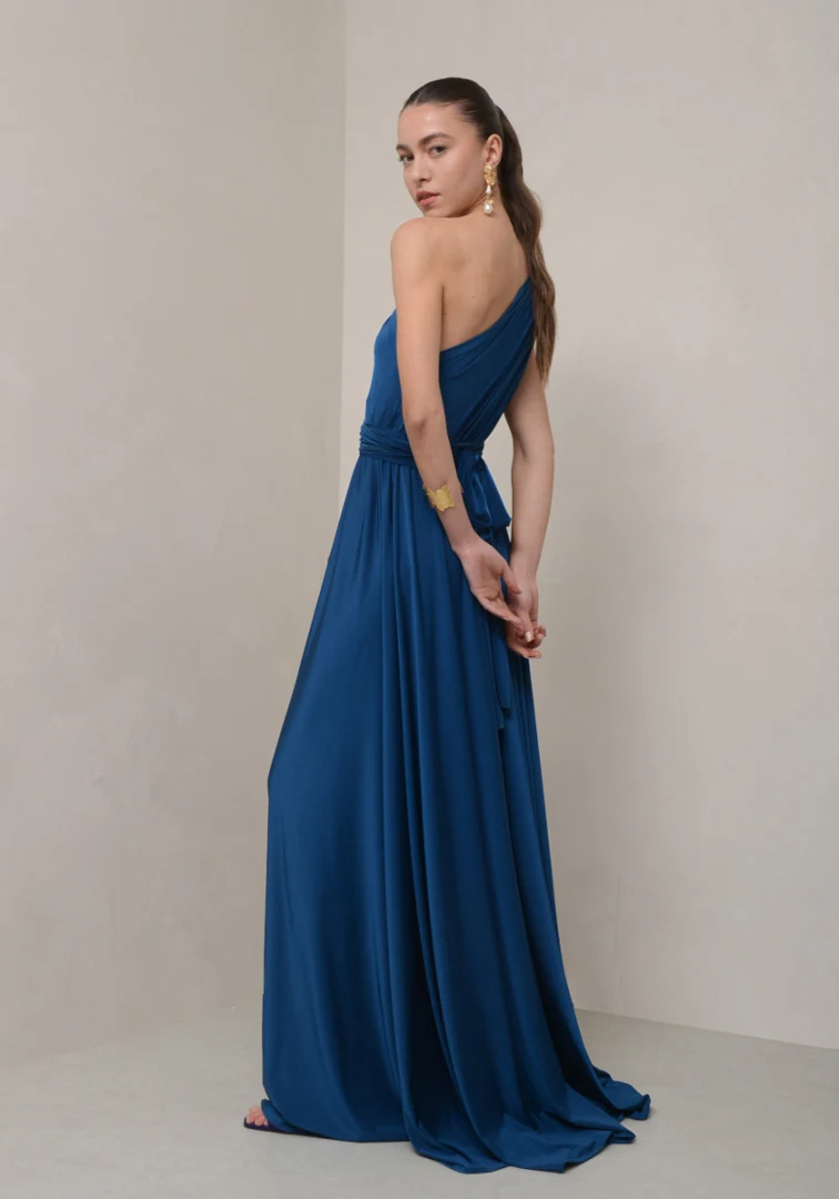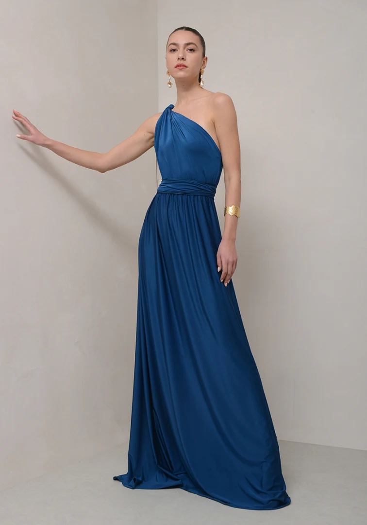 Αρχαιοελληνικού τύπου φόρεμα με έναν ώμο και ανάλαφρη φούστα σε γραμμή ”Α”.