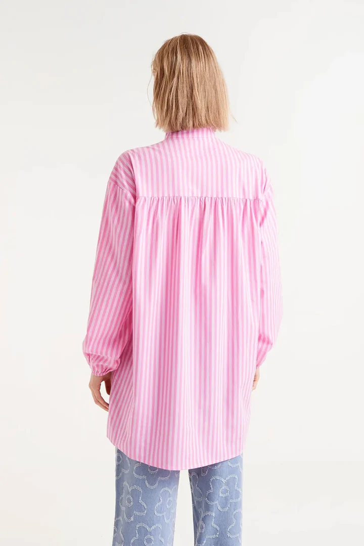 Oversized shirt with pink striped print