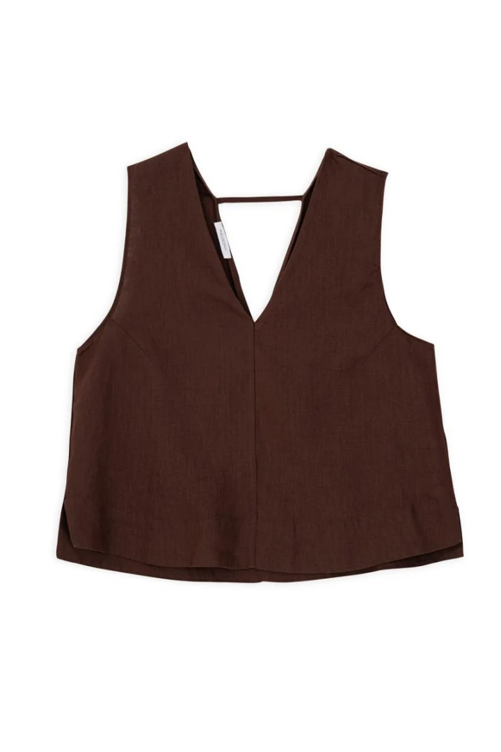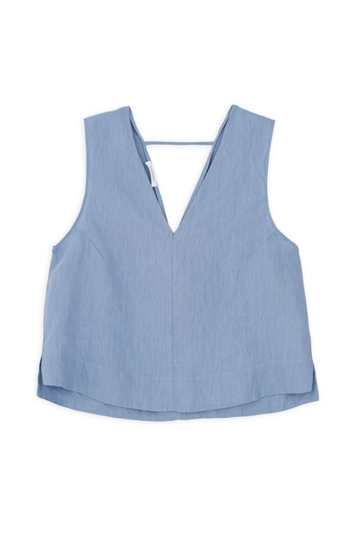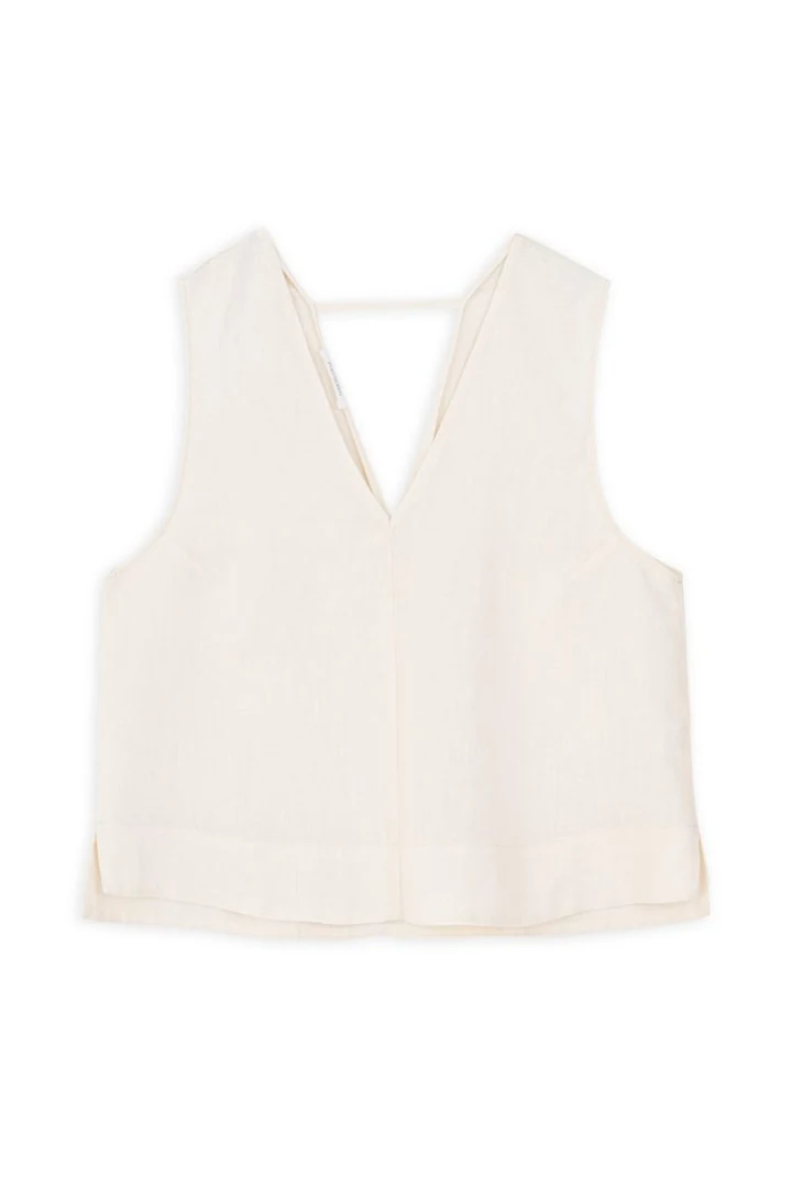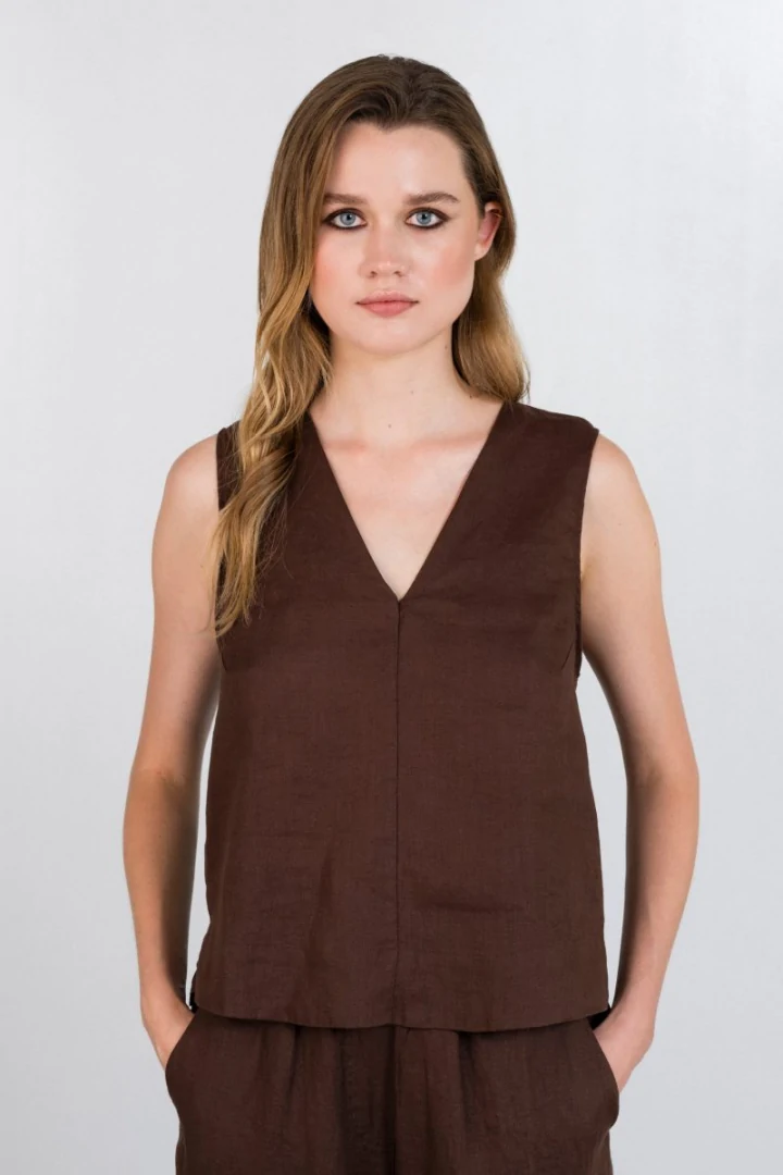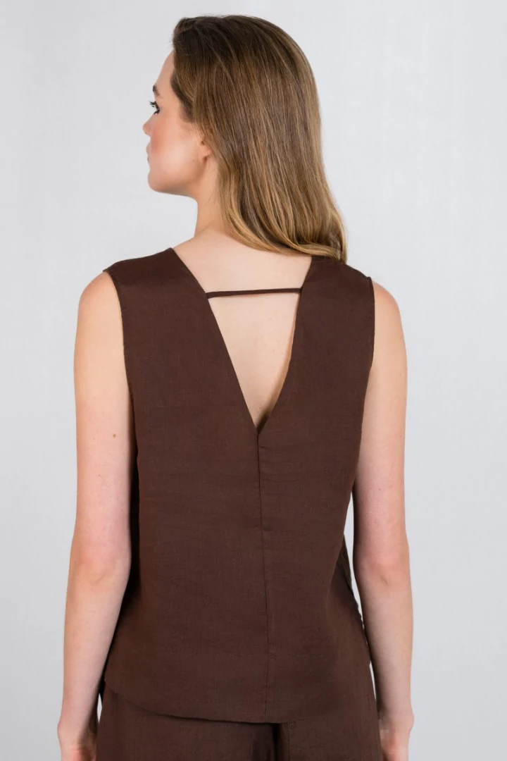 Cropped top linen, αμάνικο, με V λαιμόκοψη, με ανοιχτή πλάτη