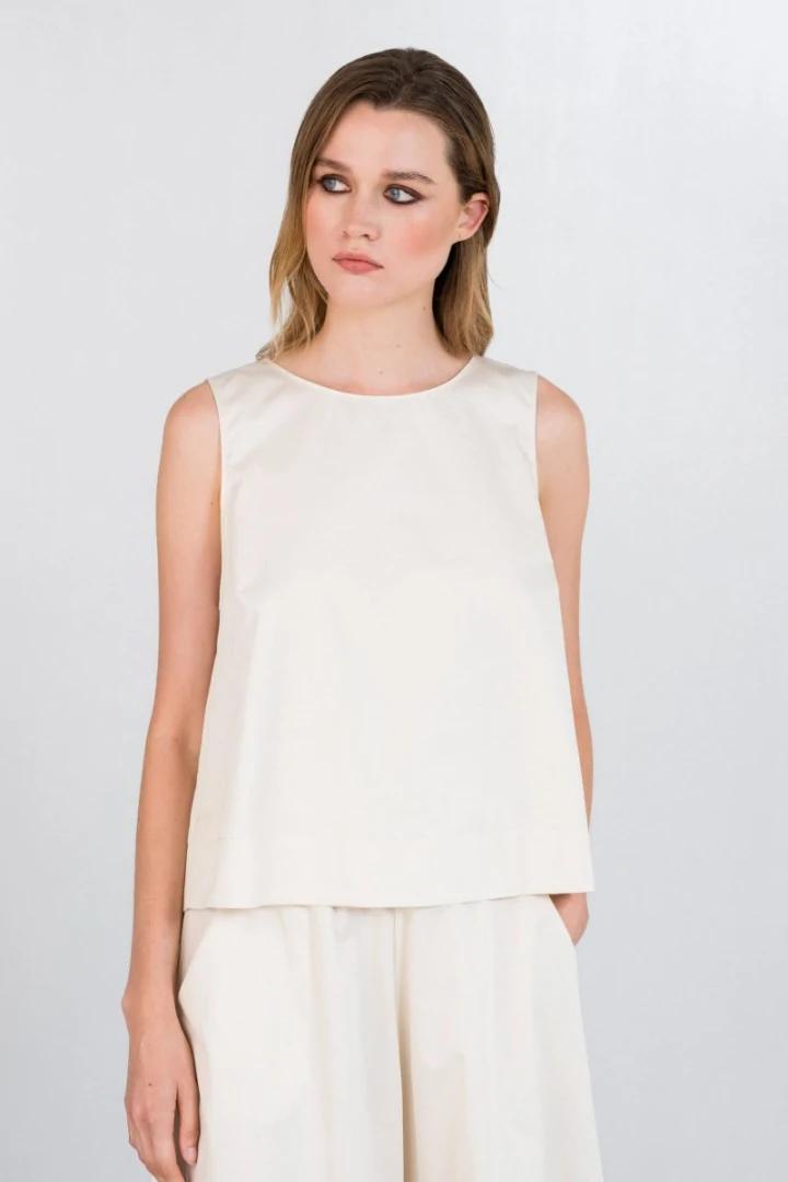Cropped top αμάνικο με στρογγυλή λαιμόκοψη