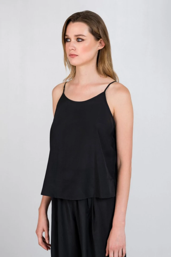 Cropped top silky, με λεπτή τιράντα και στρογγυλή λαιμόκοψη