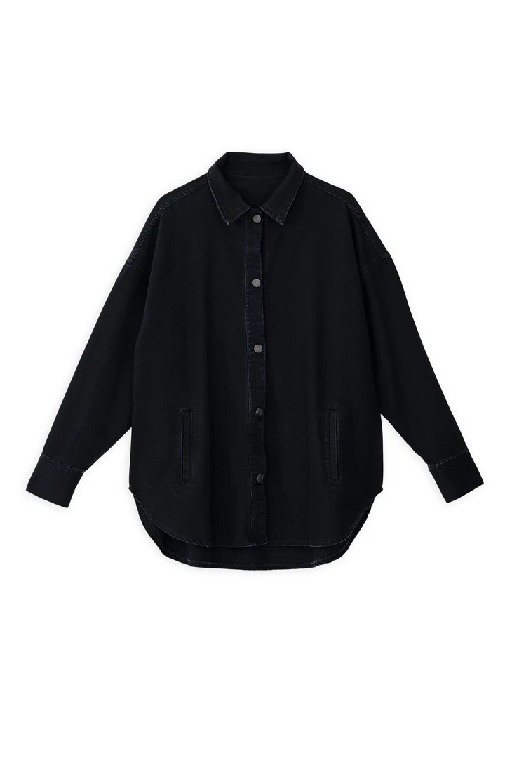 Μαύρο Πουκάμισο τζακετ τζιν σε oversized γραμμή