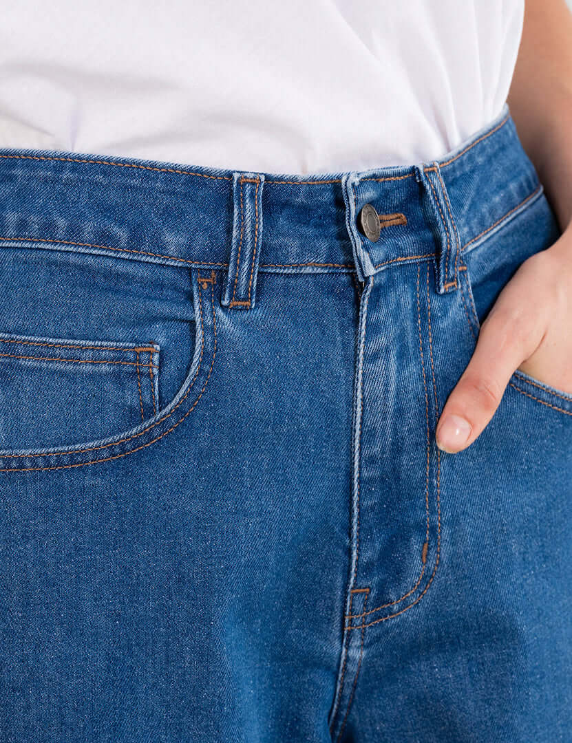 Philosophy jeans, ψηλόμεσο σχέδιο με χαλαρή balloon γραμμή, κλείσιμο με κουμπί στο μπροστά μέρος και τσέπες στο πλάι και πίσω.