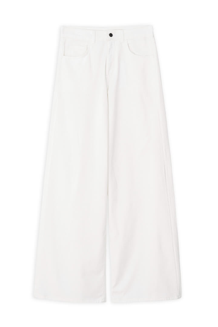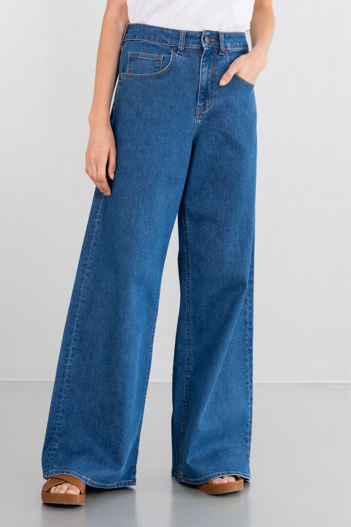 Philosophy jeans ψηλόμεσο wide leg, κλείσιμο με κουμπί στο μπροστά μέρος και τσέπες στο πλάι και πίσω.