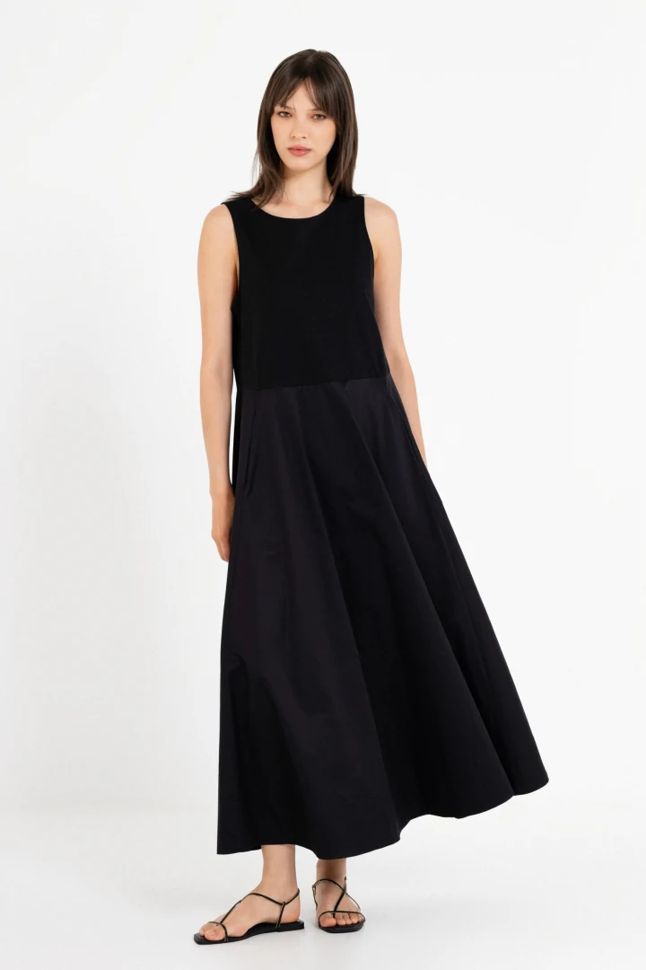 Ανακαλύψτε τον ορισμό της minimal κομψότητας με το αμάνικο Maxi Poplin φόρεμα της Philosophy. Σχεδιασμένο με λιτή στρογγυλή λαιμόκοψη και ενσωματωμένη ζώνη από το ίδιο ύφασμα, τονίζει διακριτικά τη μέση χαρίζοντας άψογη, αέρινη κίνηση. Κατασκευασμένο από 100% premium βαμβακερή ποπλίνα, προσφέρει απόλυτη δροσιά και άνεση για τις ζεστές μέρες, ενώ οι πλαϊνές τσέπες προσθέτουν μια πρακτική, casual πινελιά. Φορέστε το με σανδάλια ή πλατφόρμες και δημιουργήστε το απόλυτο καλοκαιρινό look. 100% Ελληνικής παραγωγής.
