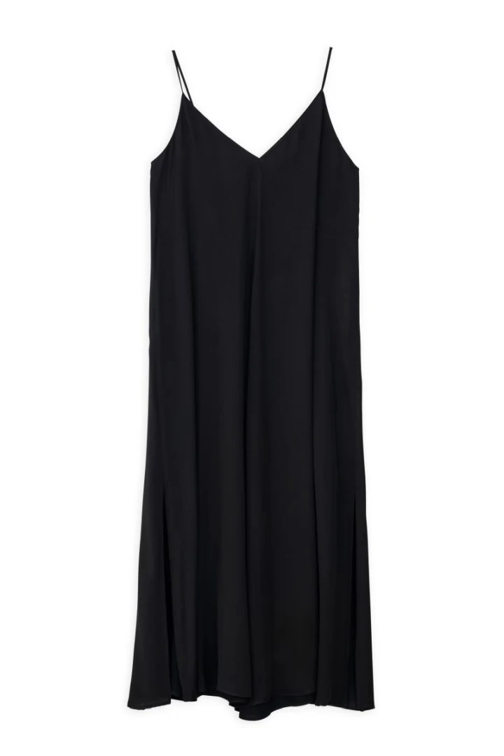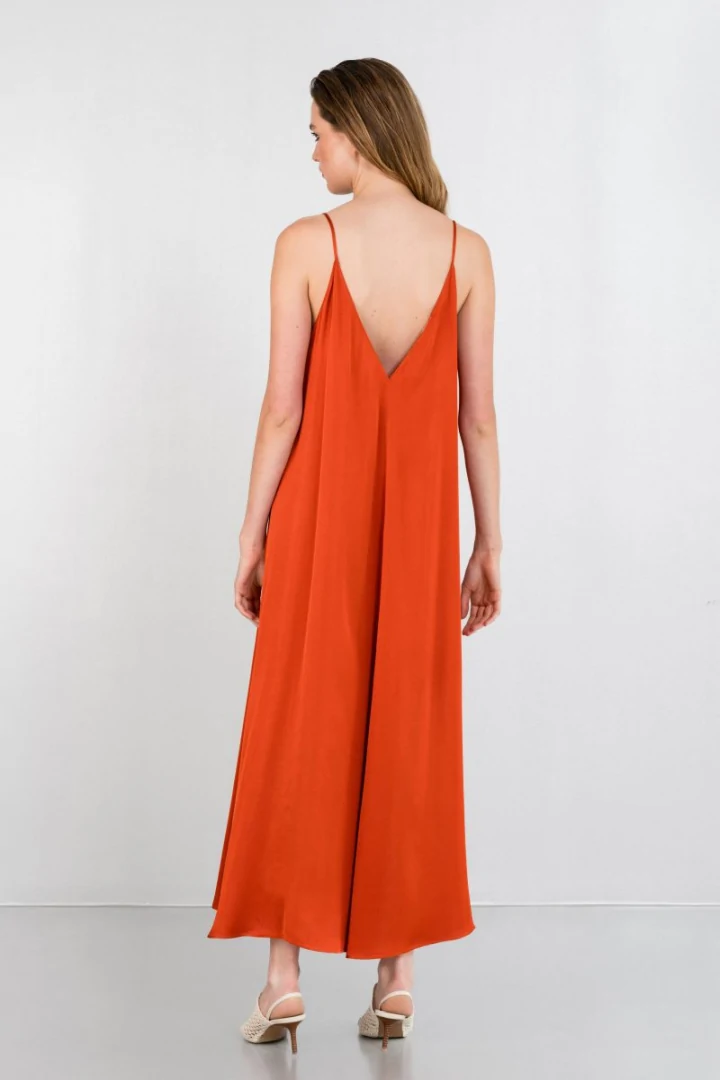 Φόρεμα maxi satin, με λεπτή τιράντα, V λαιμόκοψη, με ανοιχτή πλάτη, με σκίσιμο στο πλάι