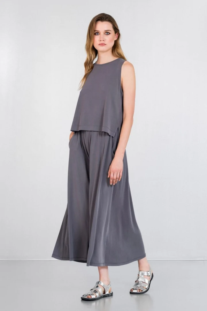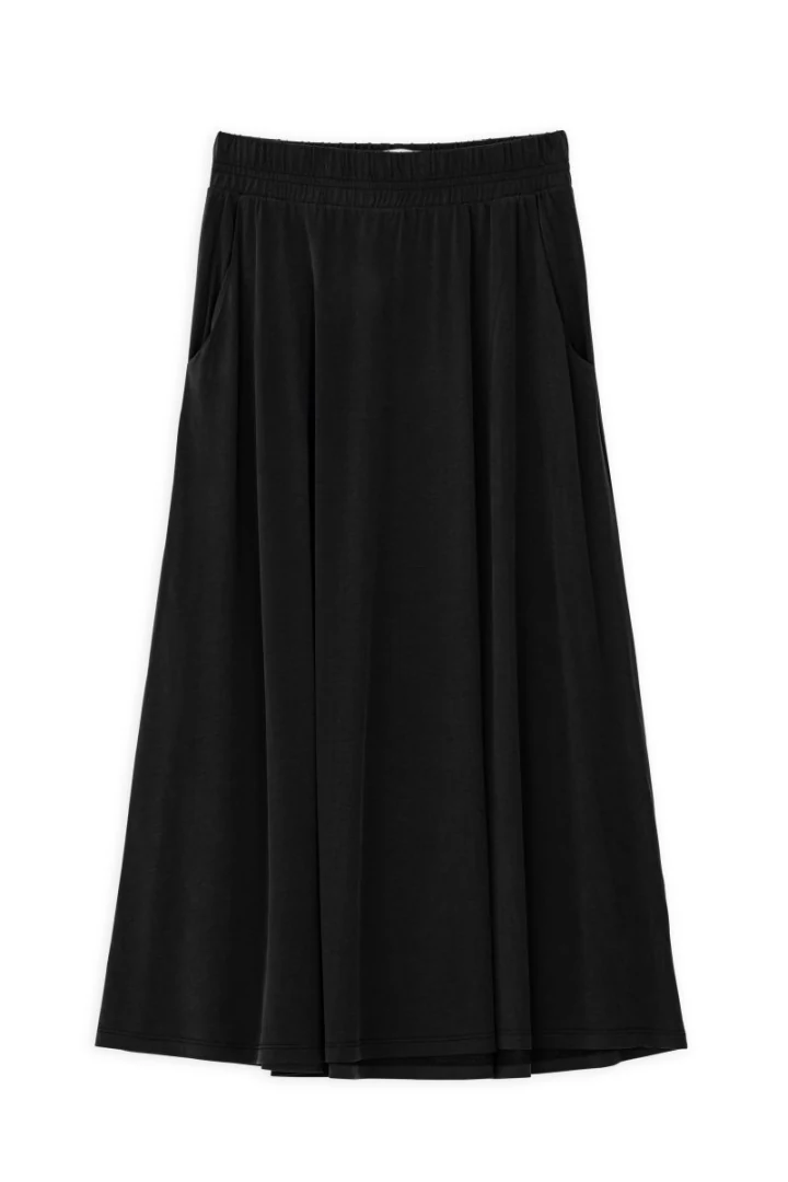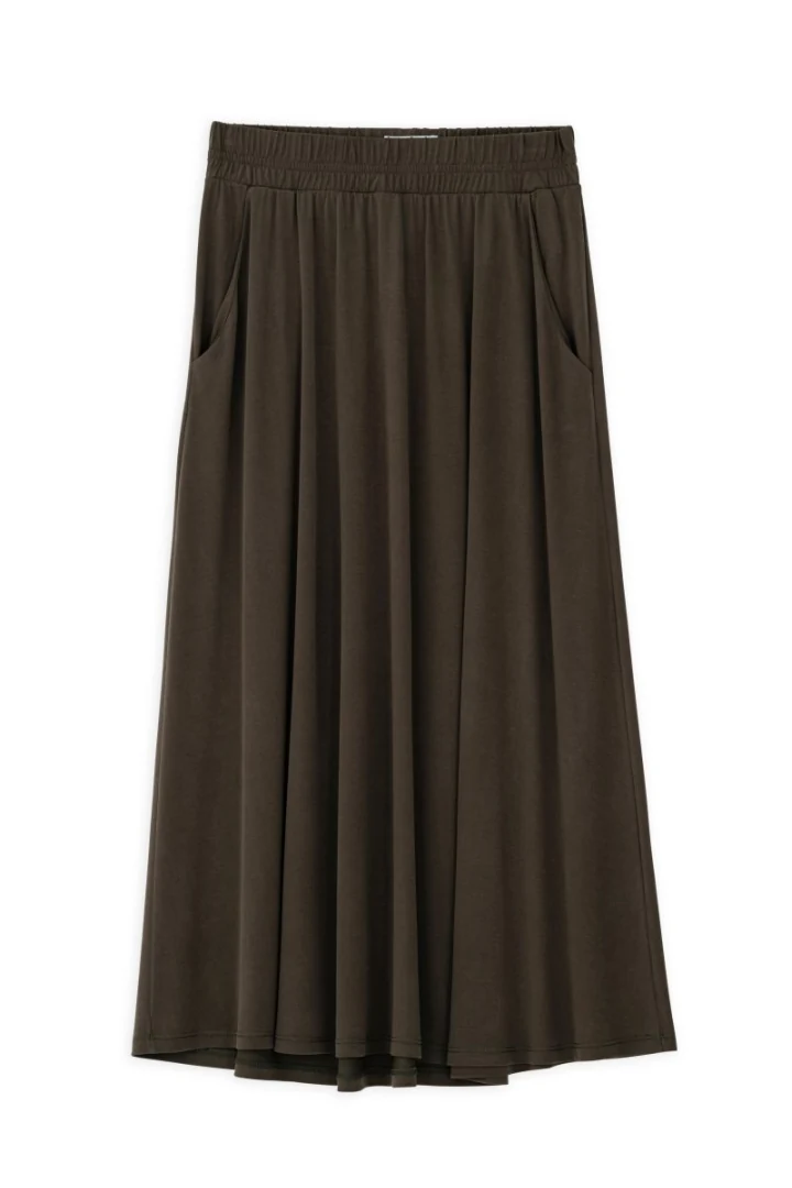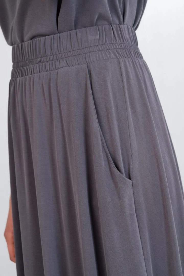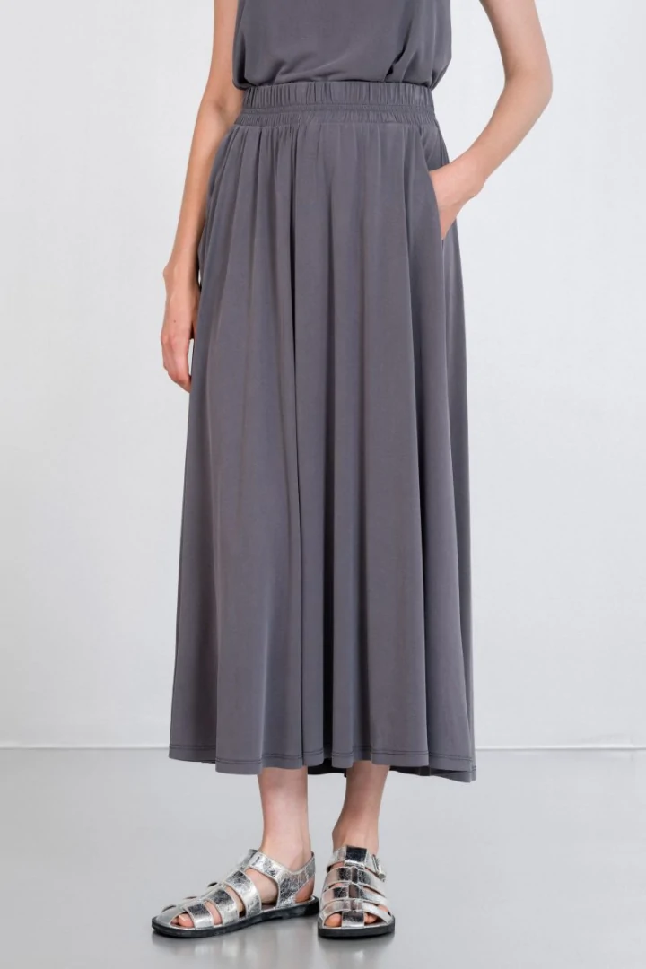 Φούστα basic cupro, ψηλόμεση με λάστιχο στη μέση και τσέπες στο πλάι