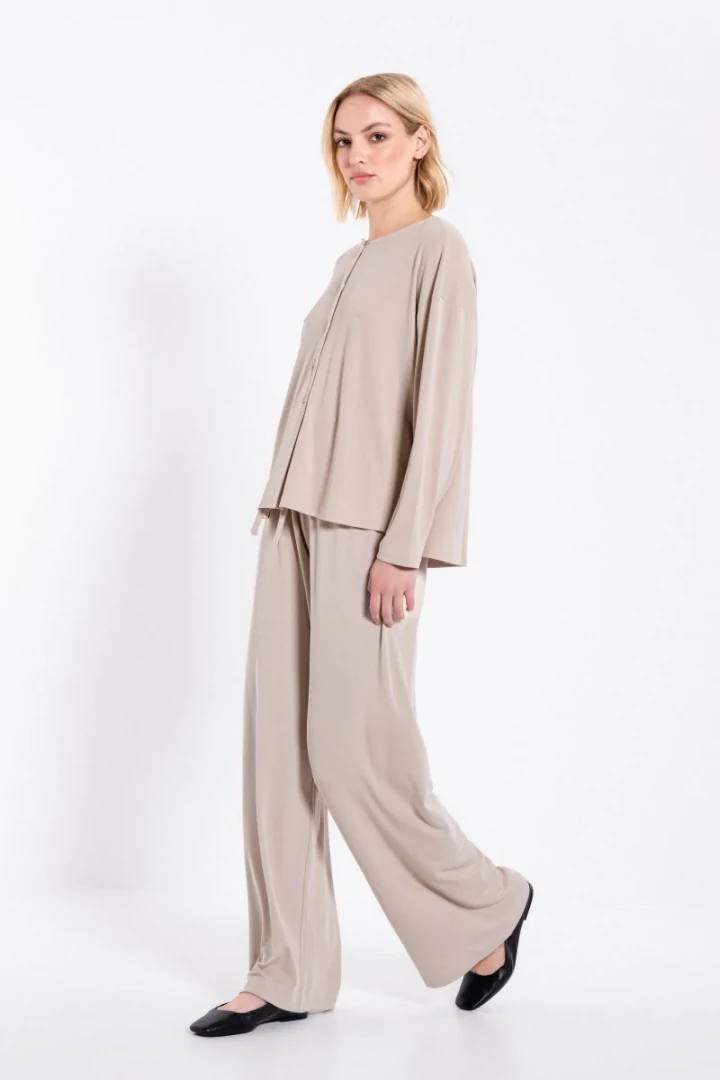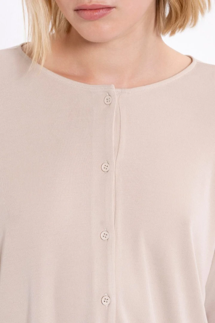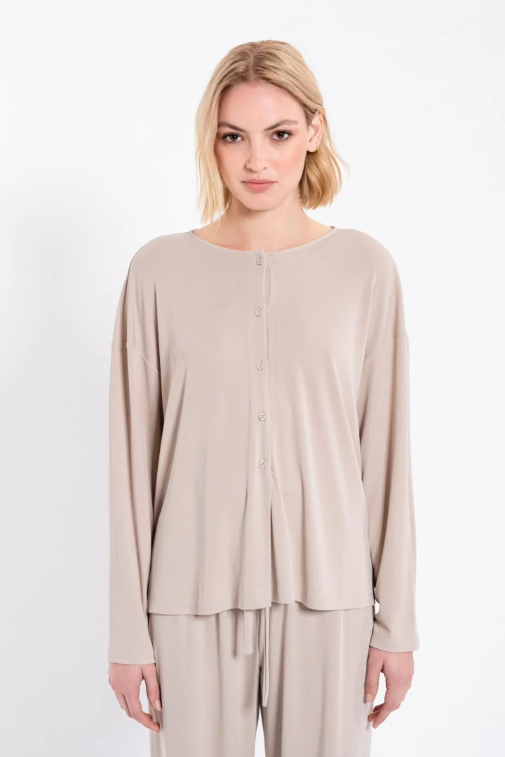 Μπλούζα rib με μακρύ μανίκι, στρογγυλή λαιμόκοψη και κλείσιμο με κουμπιά στο μπροστά μέρος