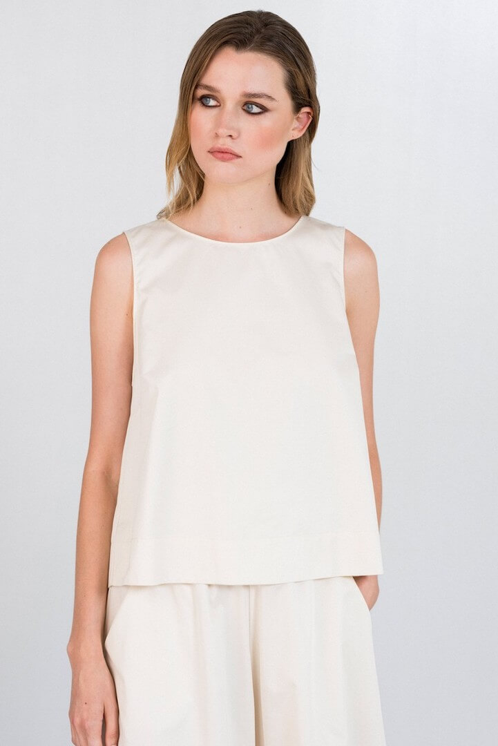Philosophy cropped top poplin, αμάνικο, με στρογγυλή λαιμόκοψη και φαρδιά κοντή εφαρμογή.