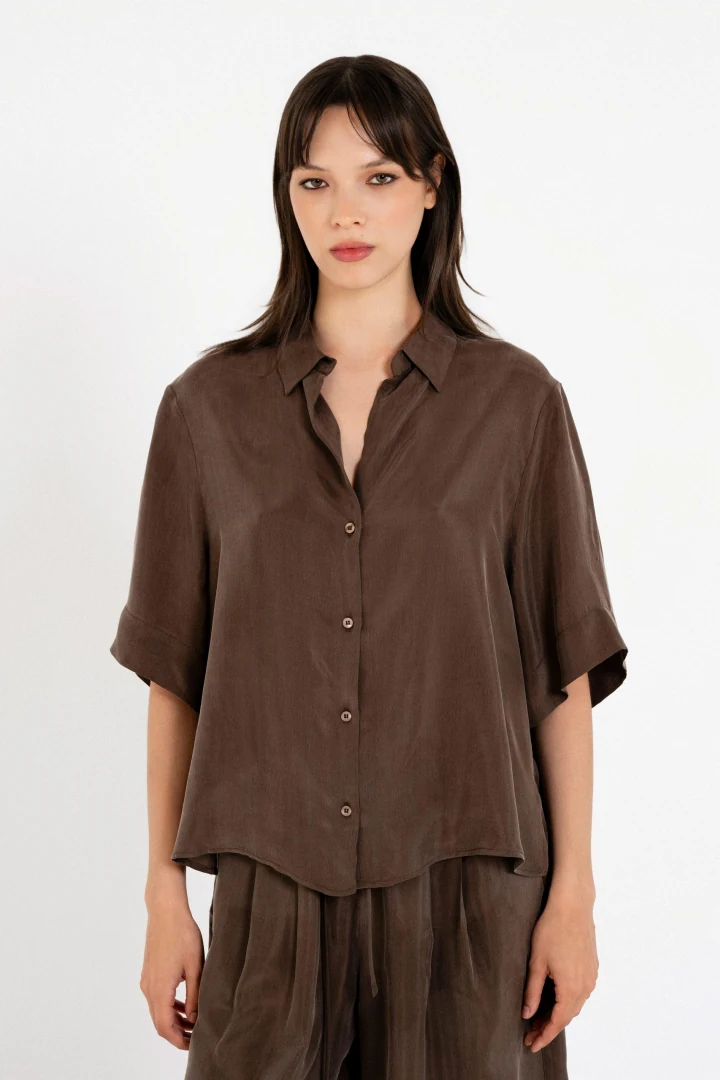 Δώστε μια πνοή πολυτέλειας στο καθημερινό σας ντύσιμο με το γυναικείο πουκάμισο Cupro της Philosophy. Το premium ύφασμά του (100% cupro) θυμίζει μετάξι, χαρίζοντας μια μοναδικά απαλή, αέρινη αίσθηση και εξαιρετική εφαρμογή που αναβαθμίζει κάθε σας εμφάνιση. Διαθέτει κλασικό γιακά, κομψά κοντά μανίκια και διαχρονικό κλείσιμο με κουμπιά μπροστά. Συνδυάστε το εύκολα με tailored παντελόνια για το γραφείο ή με τζιν σορτς για τις χαλαρές βόλτες στην πόλη και το νησί. 100% Σχεδιασμένο και κατασκευασμένο στην Ελλάδα.