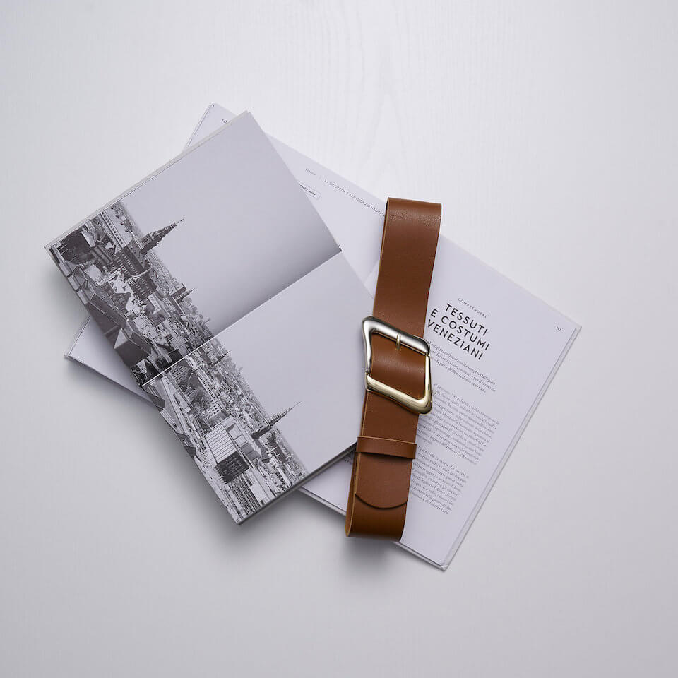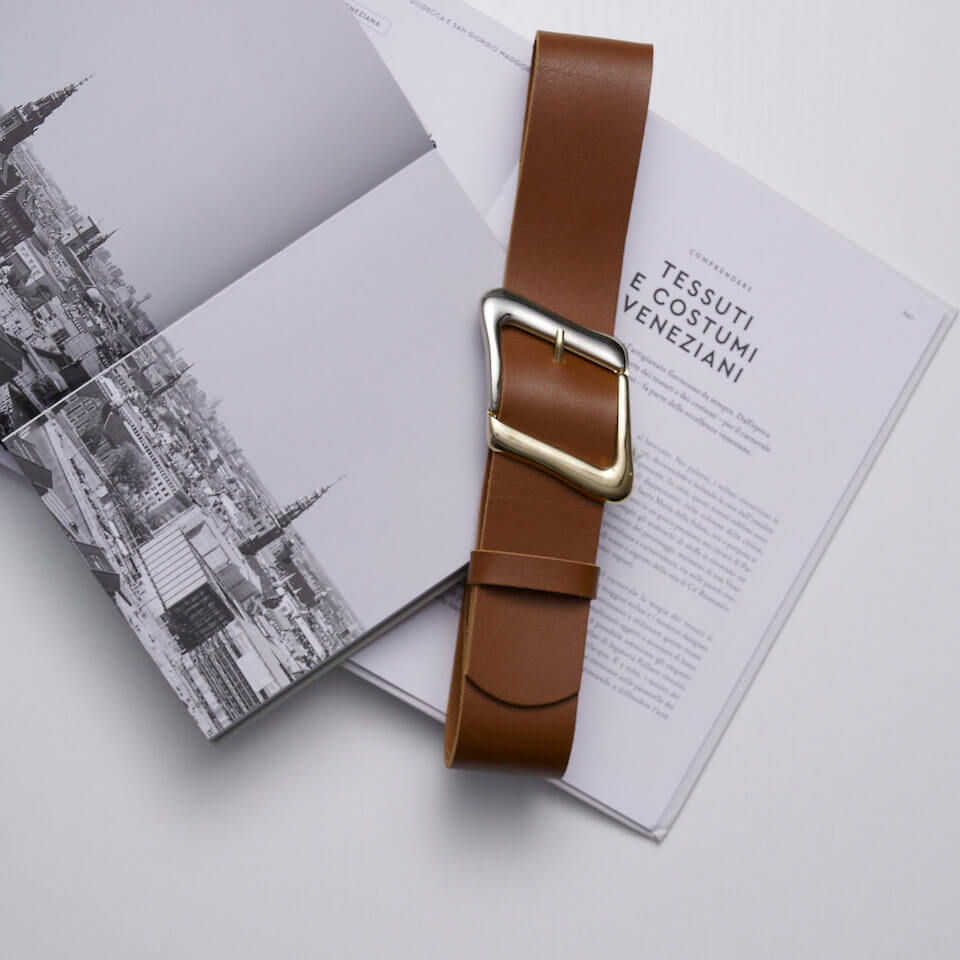 Χειροποίητη δερμάτινη ζώνη με χρυσή και νίκελ μεταλλική αγκράφα.