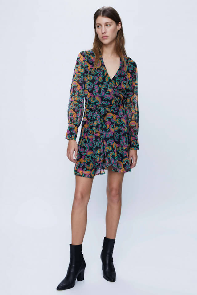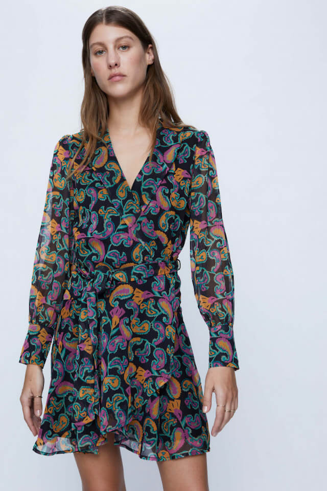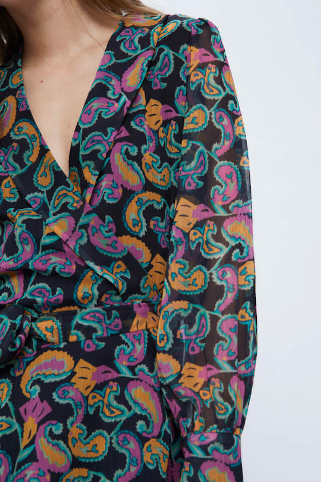 SHORT WRAP DRESS WITH MULTICOLORED PAISLEY PRINT
