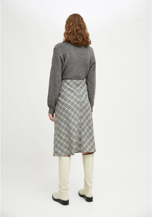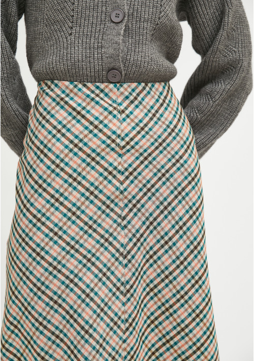 Smock midi skirt with check print. Fixed waist with back zip.