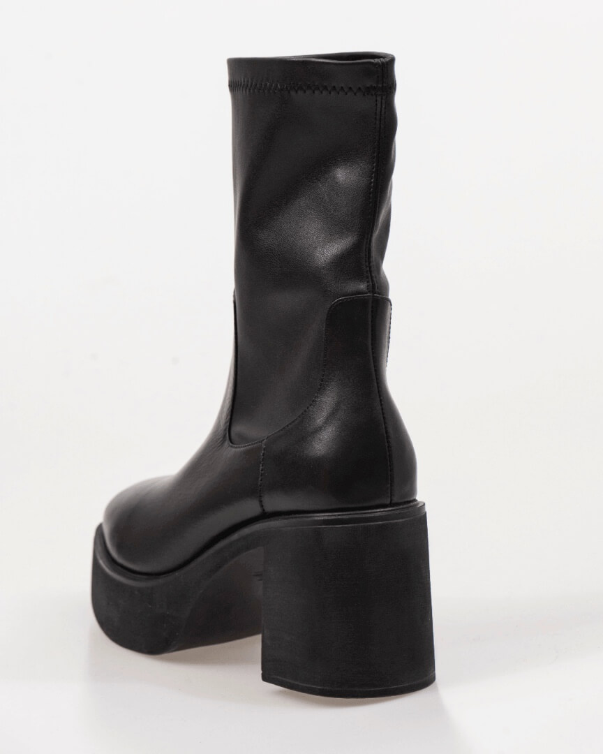 Γυναικεία δερμάτινα μποτάκια της εταιρίας Sochic Shoes. Χοντρό τακούνι με στρογγυλή μύτη. Δεν έχουν φερμουάρ. Είναι ελαστικά στο πάνω μέρος και το φοράς σαν κάλτσα. Άνετα και μαλακά, μπορείς να τα φορέσεις από το πρωί μέχρι το βράδυ.