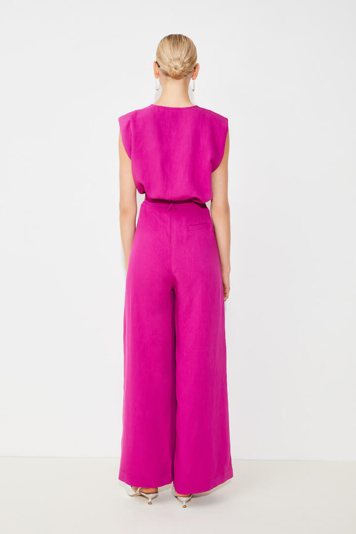 Suncoo-Paris, κοντή μονόχρωμη μπλούζα με περιτύλιγμα. Βάτες στους ώμους και κλείσιμο στο κάτω μέρος με πατιλέτα και κουμπί.
