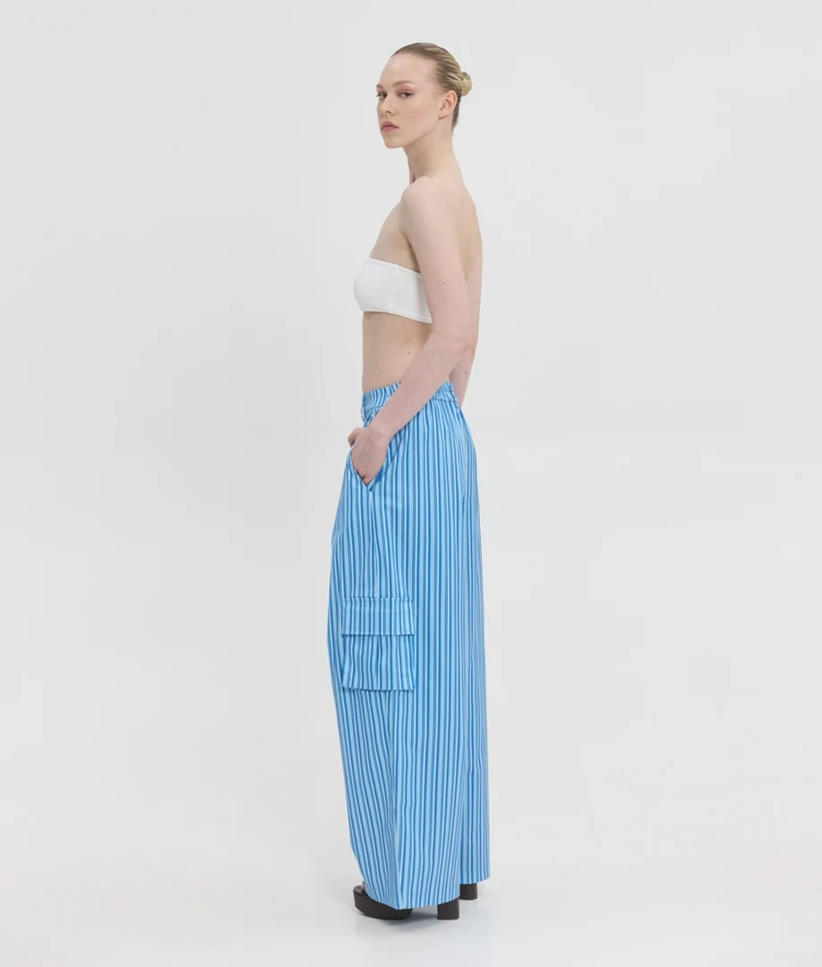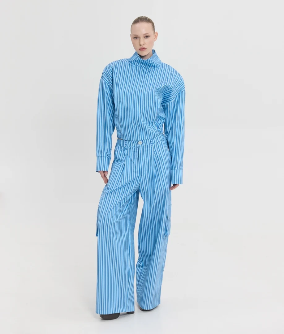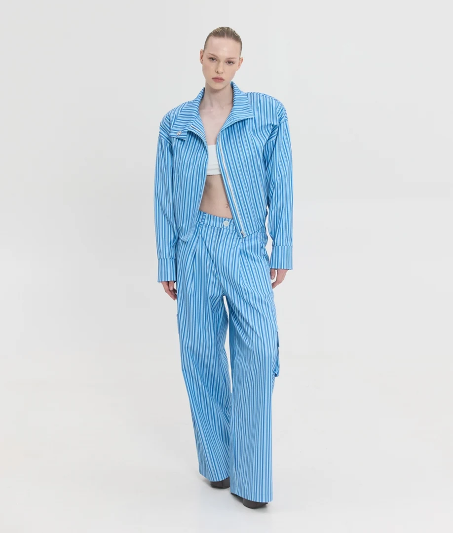 Δώστε απόλυτο street style χαρακτήρα στις εμφανίσεις σας με το Devon Printed Pants από τη Sunsetgo. Αυτό το statement γυναικείο ριγέ παντελόνι επαναπροσδιορίζει την τάση των cargo, προσφέροντας μια εξαιρετικά άνετη, φαρδιά (loose) γραμμή που χαρίζει απόλυτη ελευθερία κινήσεων και δυναμικό αέρα. Είναι σχεδιασμένο με πρακτικό και ασφαλές κλείσιμο με φερμουάρ και κουμπί στο μπροστινό μέρος, συνδυάζοντας άψογα τη λειτουργικότητα με το σύγχρονο design. Η ποιοτική του σύνθεση από 57% βαμβάκι, 40% πολυεστέρα και 3% lycra εξασφαλίζει απαλή υφή, ανθεκτικότητα και ακριβώς την ελαστικότητα που χρειάζεστε για τέλεια εφαρμογή όλη την ημέρα. Διαθέσιμο σε μεγέθη S, M και L, είναι το ιδανικό κομμάτι για να δημιουργήσετε εντυπωσιακά casual chic σύνολα, ειδικά όταν συνδυαστεί με το ασορτί jacket της σειράς.