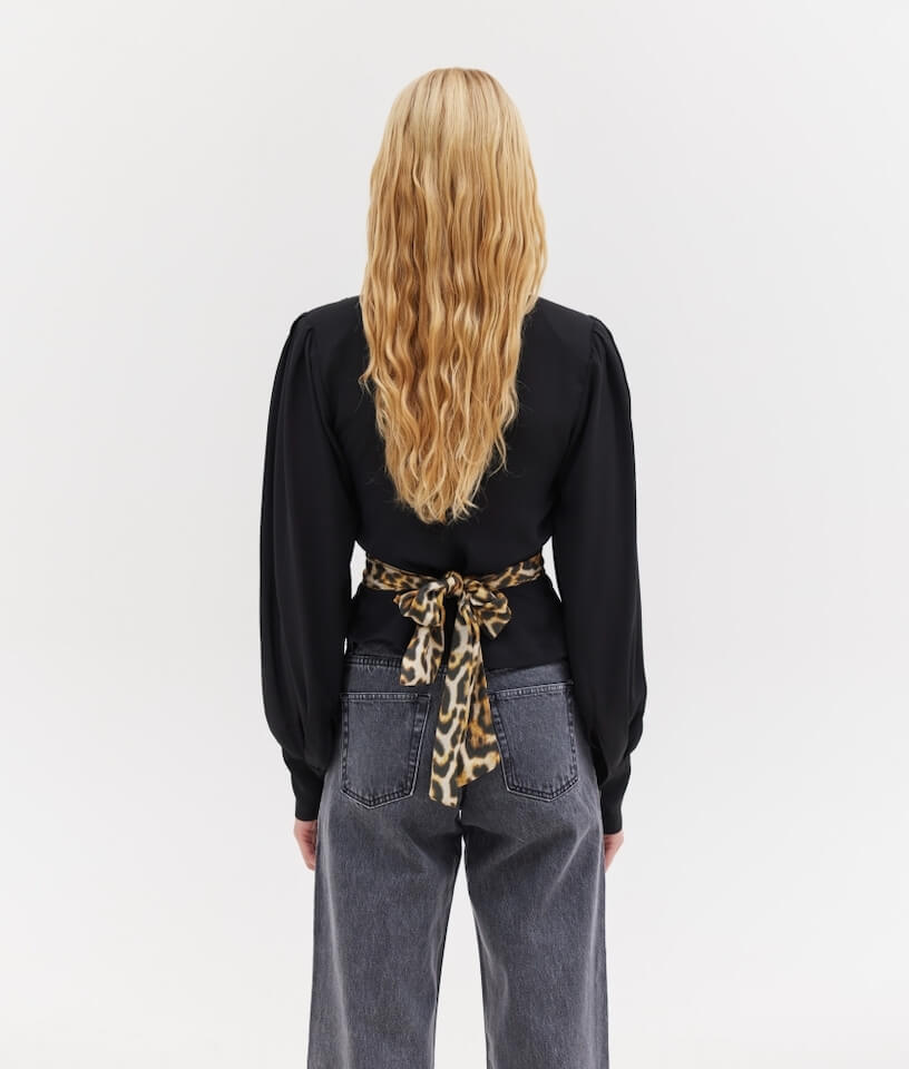 Πουκάμισο με βάτες και V λαιμόκοψη. Κλείσιμο με κουμπία μπροστά.