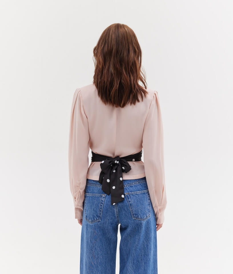 Πουκάμισο με βάτες και V λαιμόκοψη. Κλείσιμο με κουμπία μπροστά.