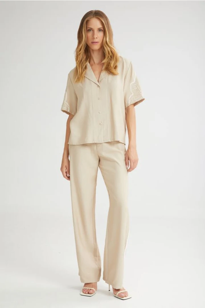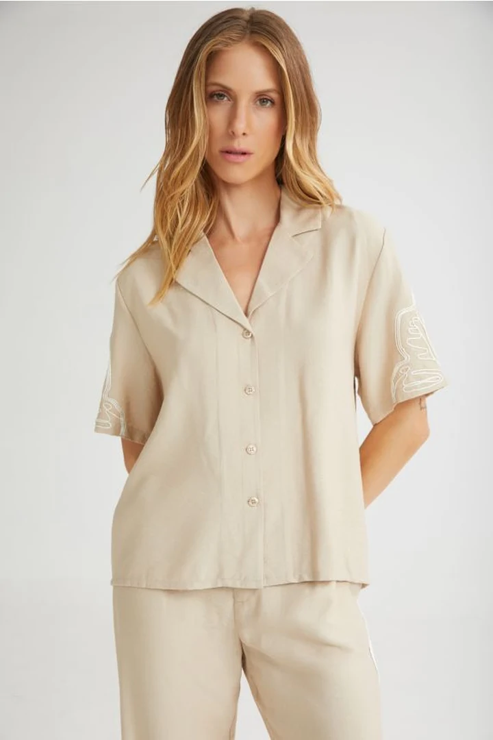 To Sundae Shirt Beige είναι το τοπ με μπροστινά κουμπιά, γιακά, χαλαρη εφαρμογή και μοναδικό κέντημα στα μανίκια που θα δώσει μια φρέσκια πνοή στις καλοκαιρινές σου εμφανίσεις!