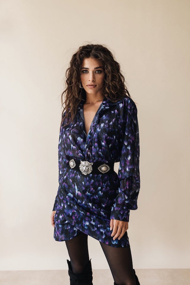 Μίνι wrap φούστα, με μαύρη βαμβακερή επένδυση.
