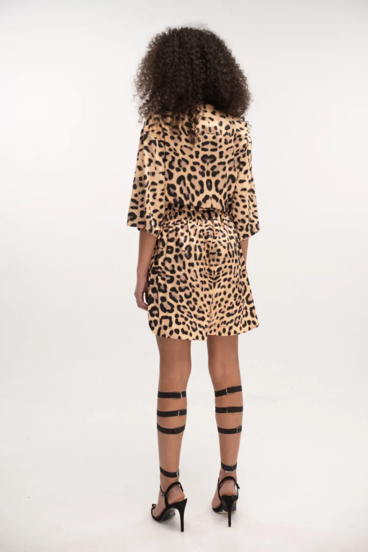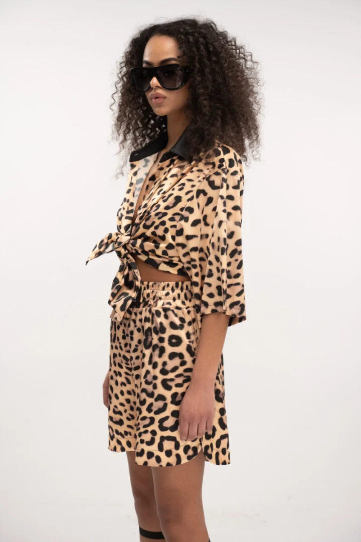 Αυτό το ελαφρύ σατέν σορτς μπορεί να συνδυαστεί με το αντίστοιχο oversized πουκάμισο.