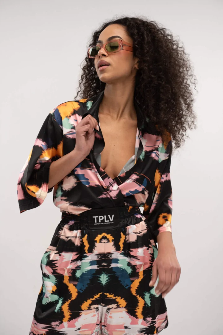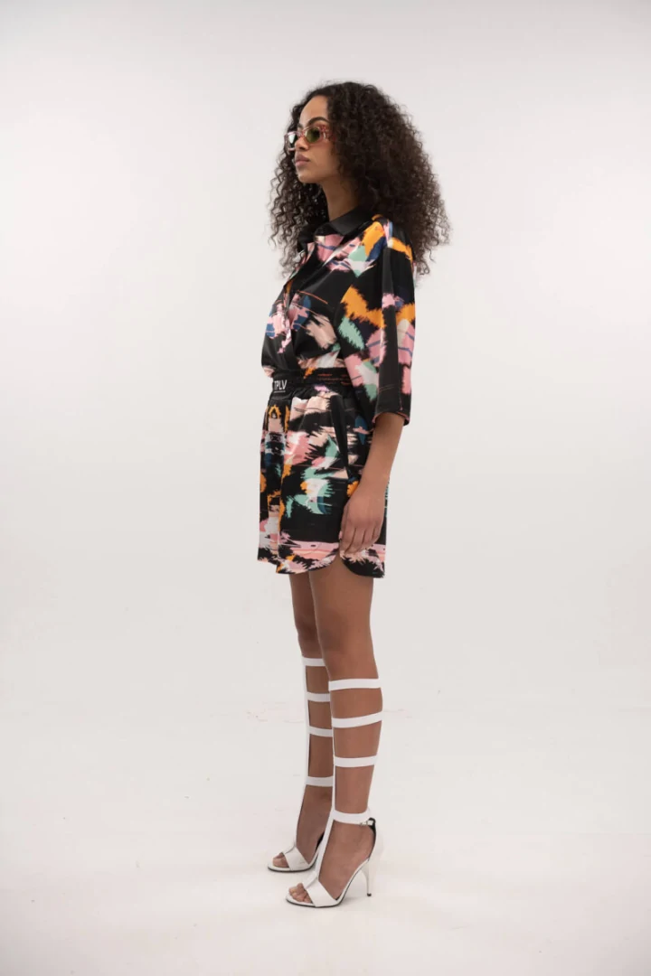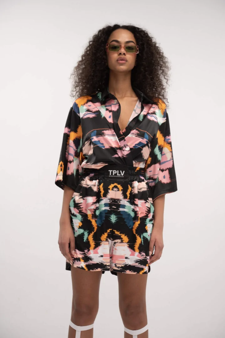 Αυτό το ελαφρύ σατέν σορτς μπορεί να συνδυαστεί με το αντίστοιχο oversized πουκάμισο.