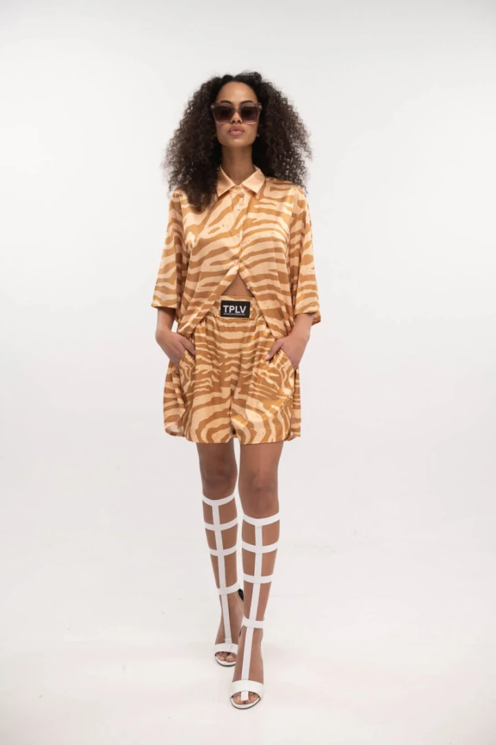 Typelove Satin Shorts Zebra Nude