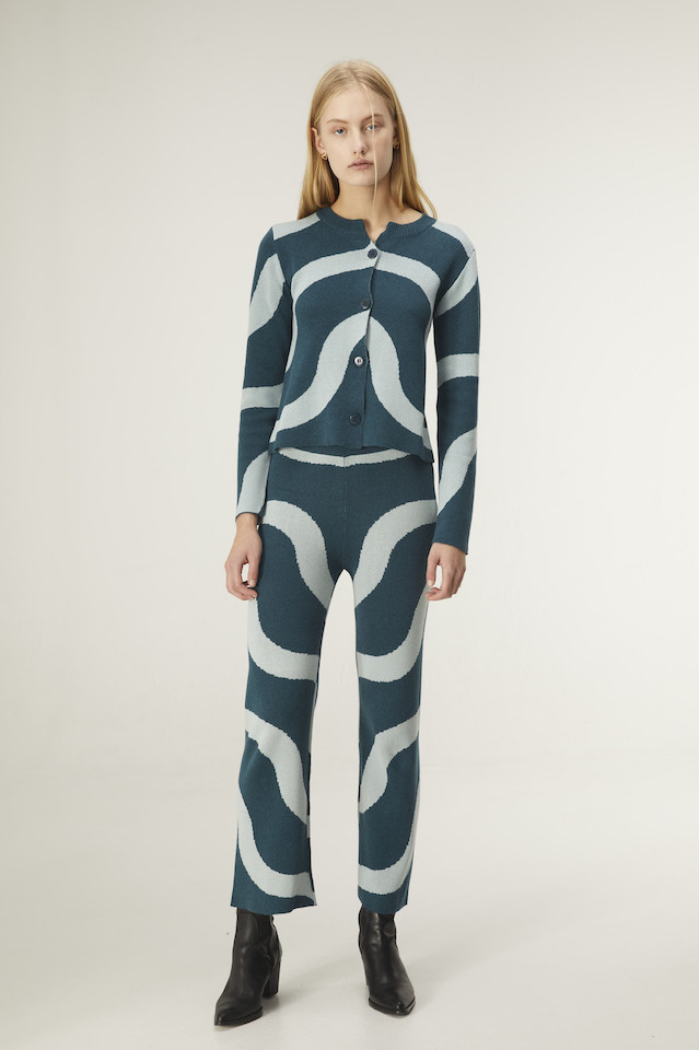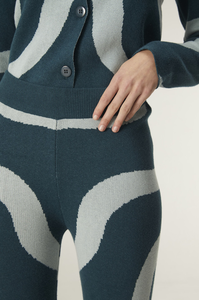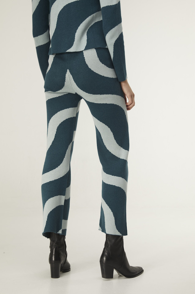 Παντελόνι σε ίσια γραμμή με wave print. Ελαστική μέση. Σύνθεση: 60% Viscose, 40% Cotton